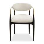 The Sleek Wraparound Frame Of The Moxie Dining Chair Exudes Style And Sophistication. The Tapered Solid Wood Frame Is Finished In Matte Black And Accented By Metal Arms In Plated Brushed Brass. Its Plush Seat And Back Is Upholstered In A Finely Textured Off White, Low Pile Velvet.