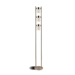 Bring a sophisticated elegance to a contemporary space. A luscious design offers a classic look in this floor lamp. Appreciate the blend of brushed silver metal and delicate frosted cylinder and glass shades. This lamp showcases the design power of minimalist styling while capturing an artistic aesthetic. Operates with an easy-access two-way foot switch.
