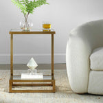 The Musing Accent Table Combines Functionality And Style. The Streamlined Iron Body Is Finished In Brushed Brass With Double Floating Glass, Perfect To Rest Your Favorite Book And A Beverage.