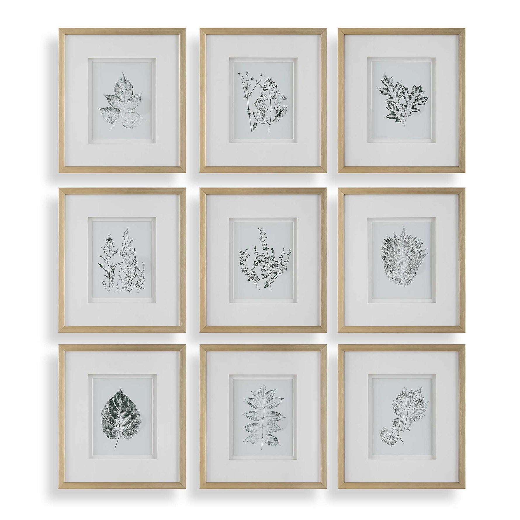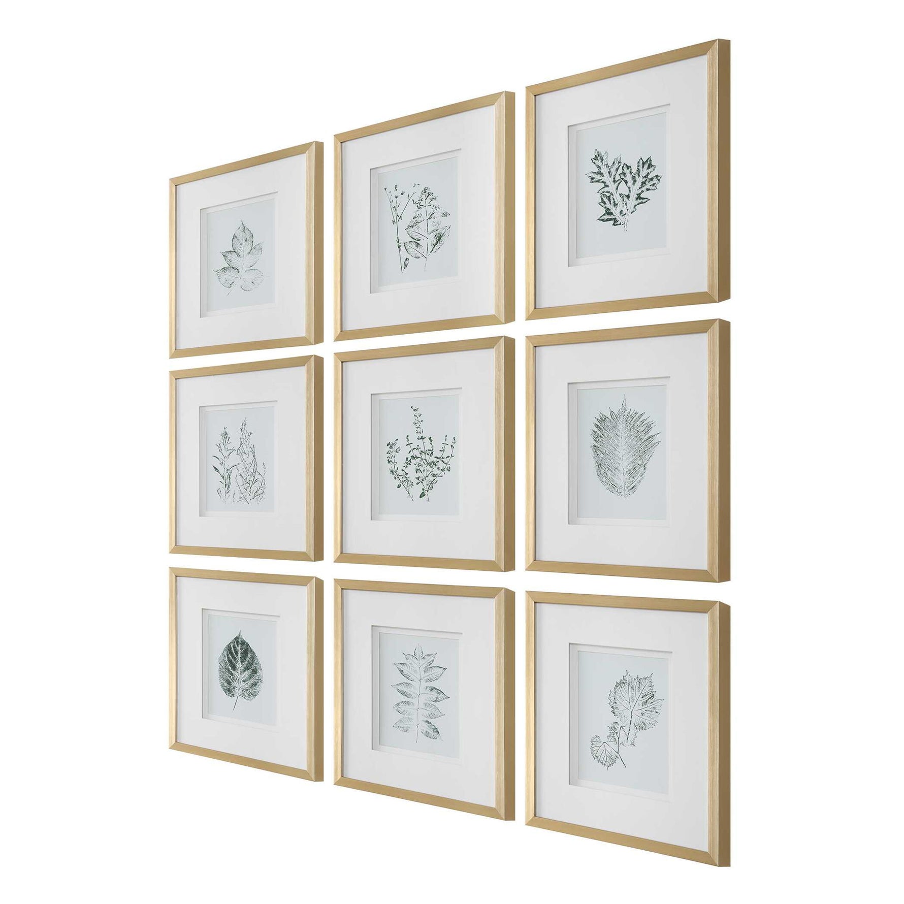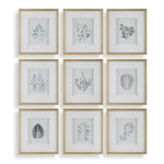 Nature's - Script Framed Botanical Prints (Set of 9) - Gold / Green / White