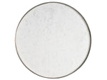 The Aspen Cocktail Table radiates a sophisticated allure, featuring a lustrous White Banswara top nestled within a sleek antique nickel frame. Its rounded form and gleaming surfaces introduce a modern opulence, channeling the essence of contemporary luxury and polished style.