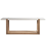 The Ellis Console, with its long and lean stature, is expertly crafted to enhance hallways and other elongated spaces. Its natural oak base and honed white quartz top present a harmonious two-tonal aesthetic, infusing any area with an organic yet elegant charm, ideal for creating an inviting and sophisticated entryway or accent space.