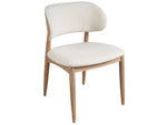 The Juno Side Chair, available in a Natural Oak finish, marries sleek minimalism with cool geometric inspiration. Its Berber Snow fabric seat contrasts beautifully against angled legs, creating a piece that's as visually engaging as it is comfortable, embodying the essence of modern sophistication.