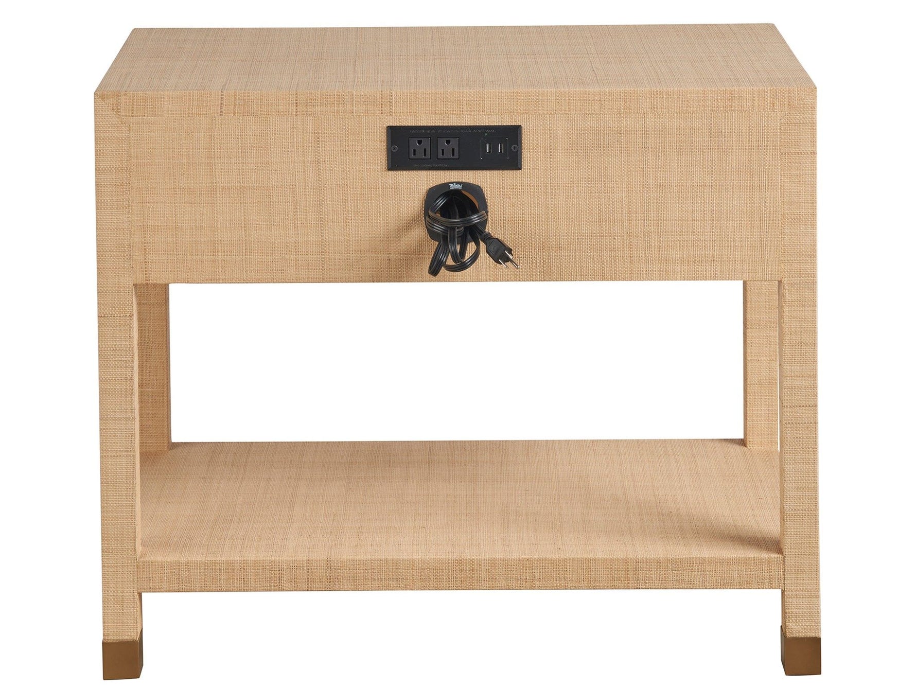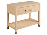 Unit price perThe Leah Nightstand, with its single drawer and full raffia-wrapped body, makes a textured statement in any bedroom. Bold bar hardware and leg accents add a touch of sophistication, enhancing the piece's rich texture and visual depth.