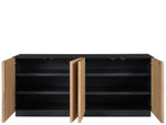 Unit price perThe Noir Credenza is a grand statement piece, with four intricately carved wooden doors nestled within a striking metal frame. It artfully combines whimsical touches with mid-century influences, presenting a unique interpretation of modern design that adds character and sophistication to any setting.