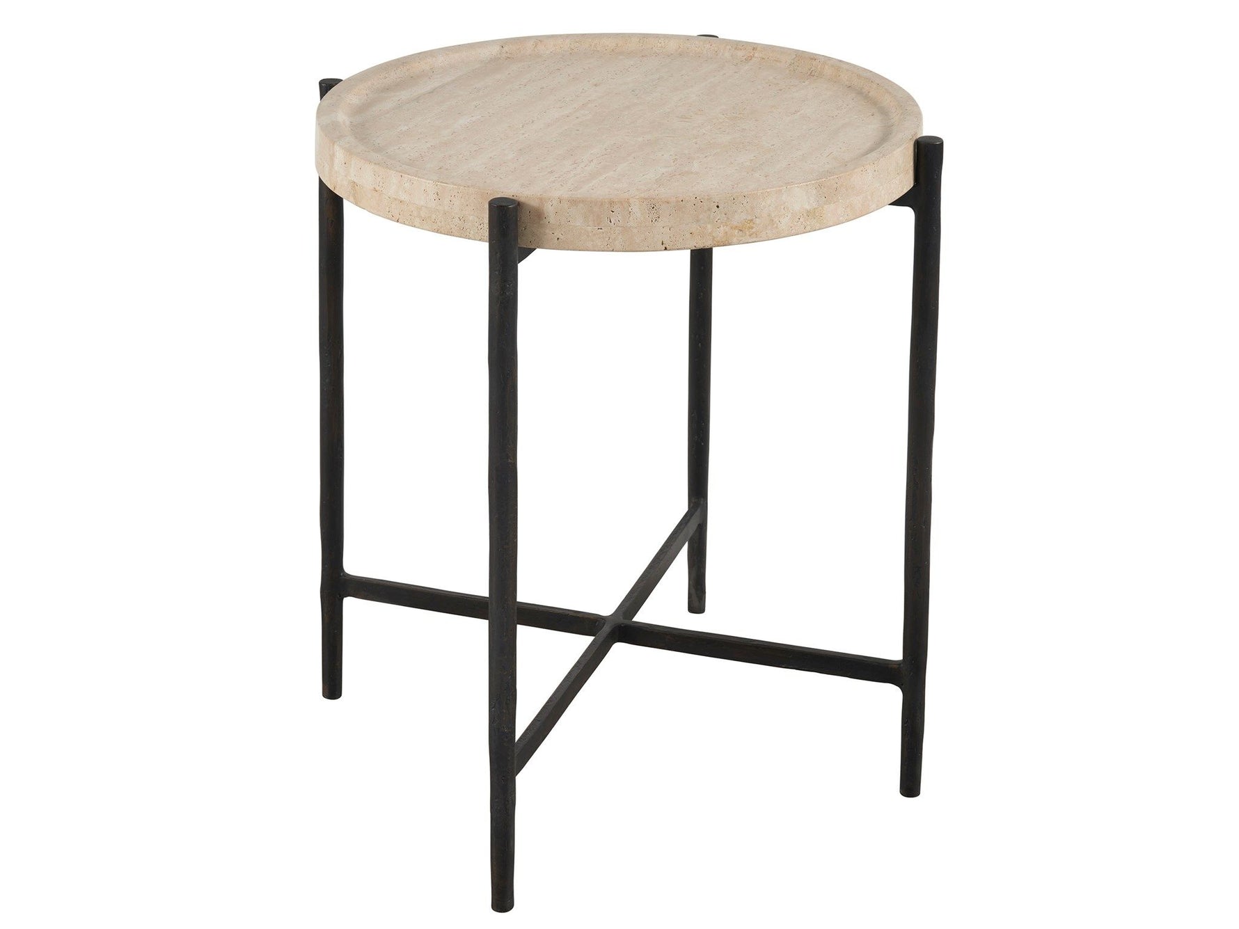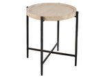 Unit price perThe Theron Round End Table presents a harmonious blend of contrasts, with its tranquil, rounded Travertine top elegantly set upon a sleek bronze metal base. This piece exemplifies modern elegance, offering a visually appealing and cohesive design that enhances the aesthetic of any contemporary room.