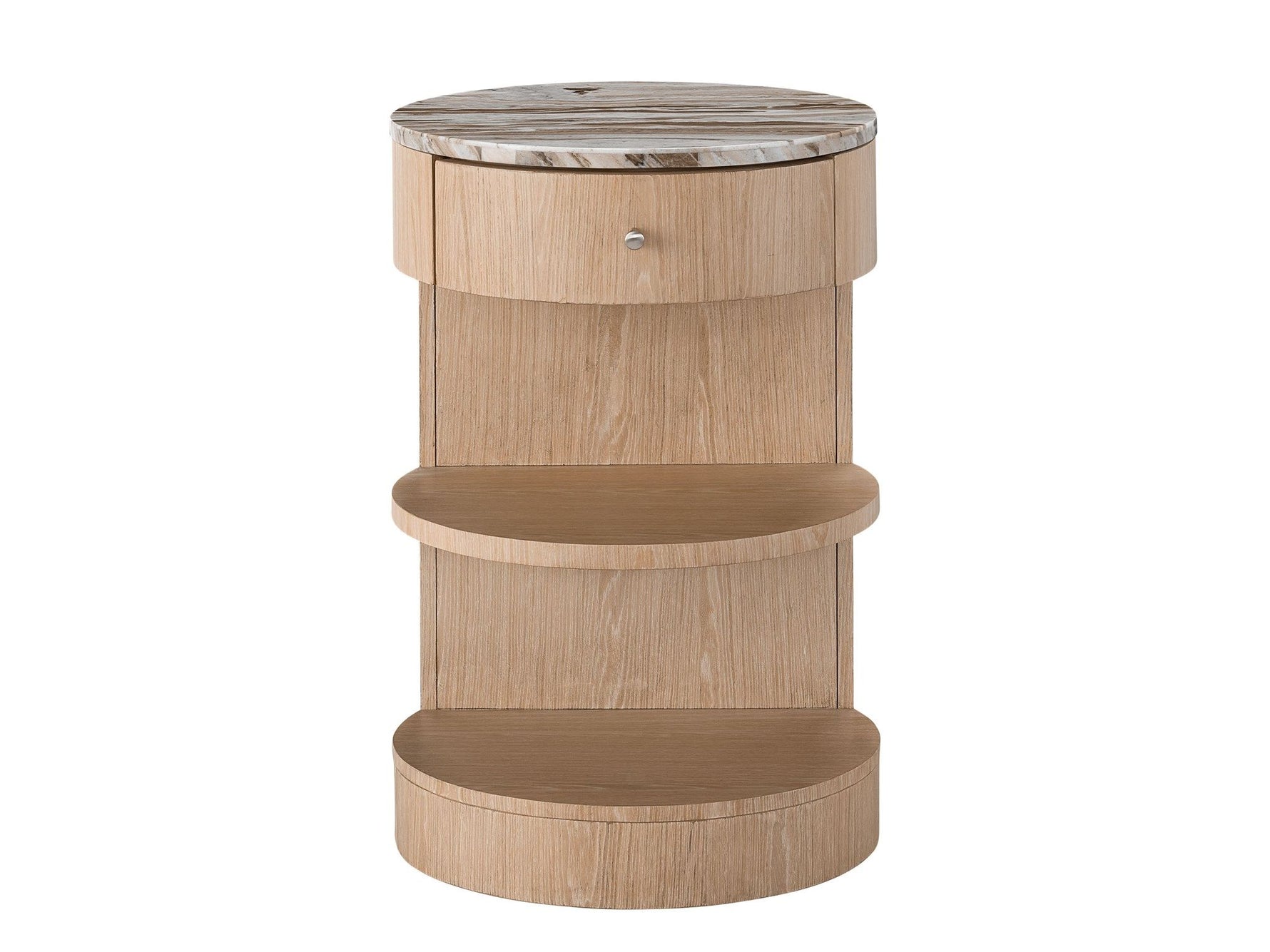 Unit price perShowcasing a free-spirited silhouette, the Round Nightstand pushes design boundaries with its half-moon shaped shelves and a complementing marble top.