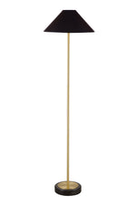 The Norfolk Floor Lamp exudes contemporary glam style, featuring a striking black marble base complemented by a sleek gold brass body. Its cone-shaped lamp shade, crafted from black metal, adds a sophisticated touch to any room. With its modern and timeless design, this lamp effortlessly combines elegance with functionality.