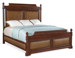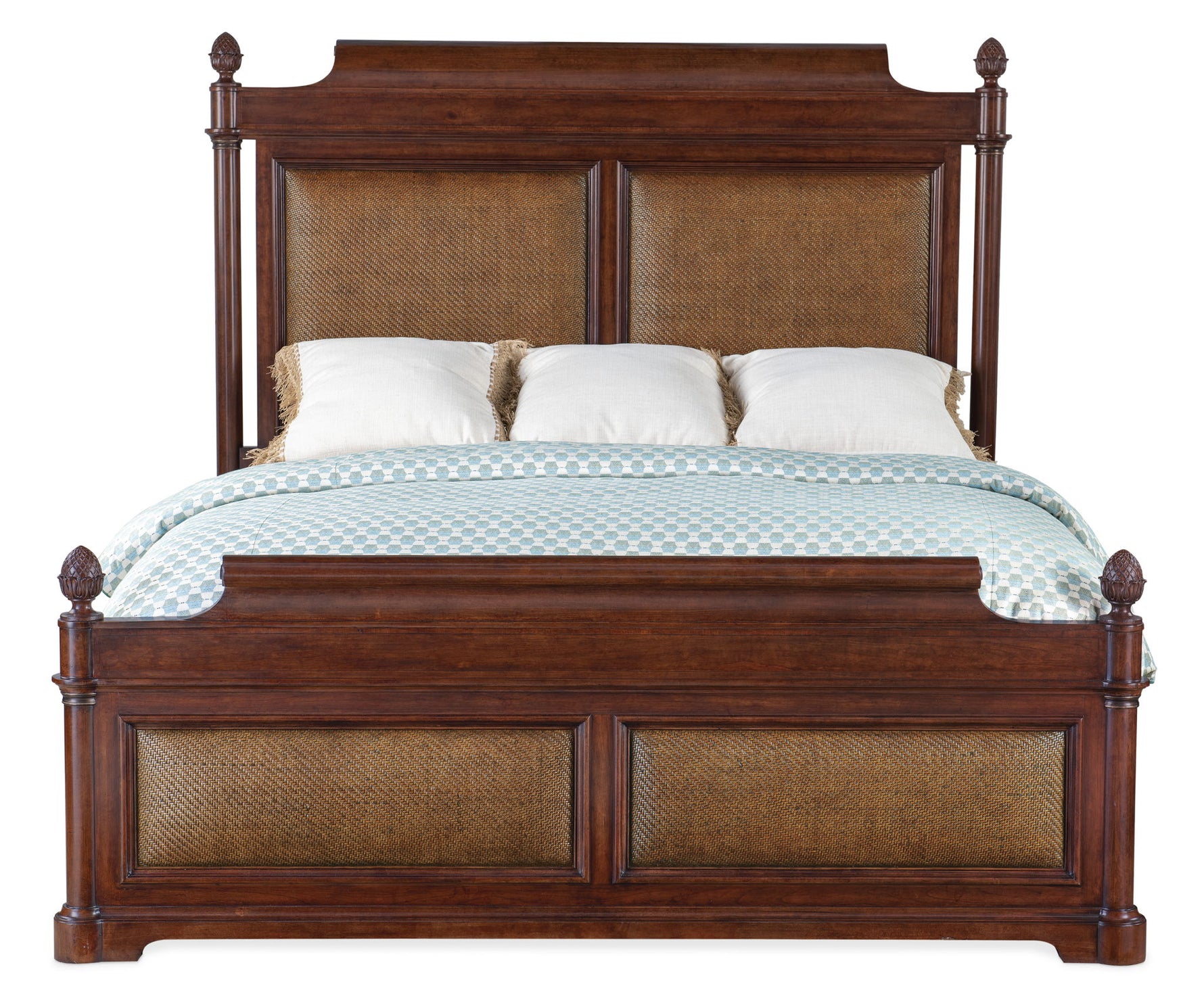 Unit price perThe tropical craftsmanship and botanical carving of the West Indies meets southern hospitality and grace with this stunning Charleston California King Panel Bed. Crafted of Cherry and Walnut Veneers with Walnut Inlay and Cane, the bed has raffia panels on the headboard and footboard, and pineapple finials on the low posts. The bed is finished in Maraschino Cherry using natural grain Cherry Veneers with dramatic cathedral structure and naturally-occurring knots to deliver a rich warm cherry finish and a smooth sophisticated aesthetic. Headboard can be used alone.