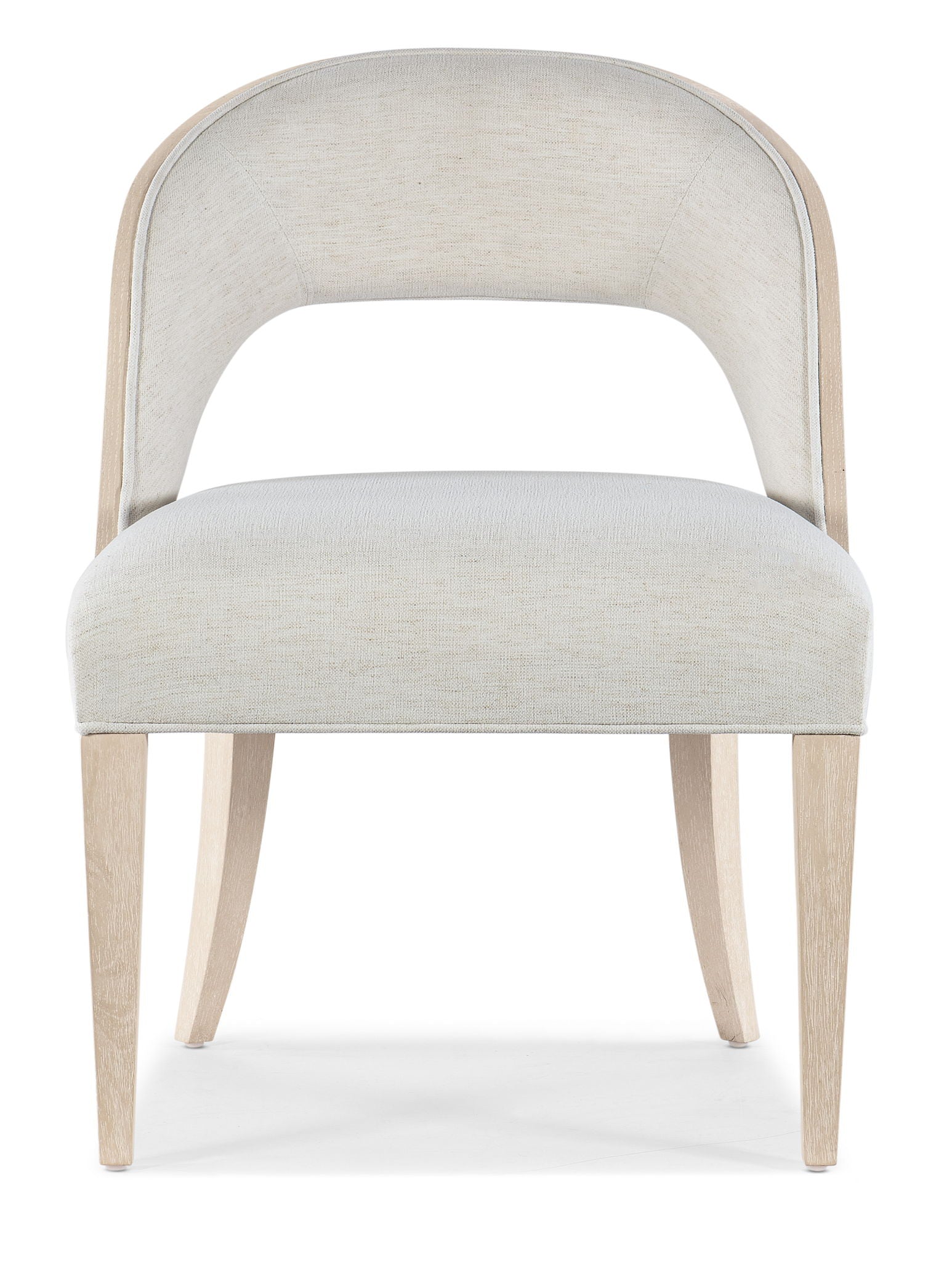 Unit price perCasual and modern yet timeless, the barrel-back Nouveau Chic Side Chair is the perfect dining or accent chair to bring a calm palette to your space. Crafted of Cathedral and Quartered Oak Veneers with light wire brushing and upholstered in the Nomad Snow linen and poly-blend fabric, these chairs are a graceful blend of design, comfort and performance.