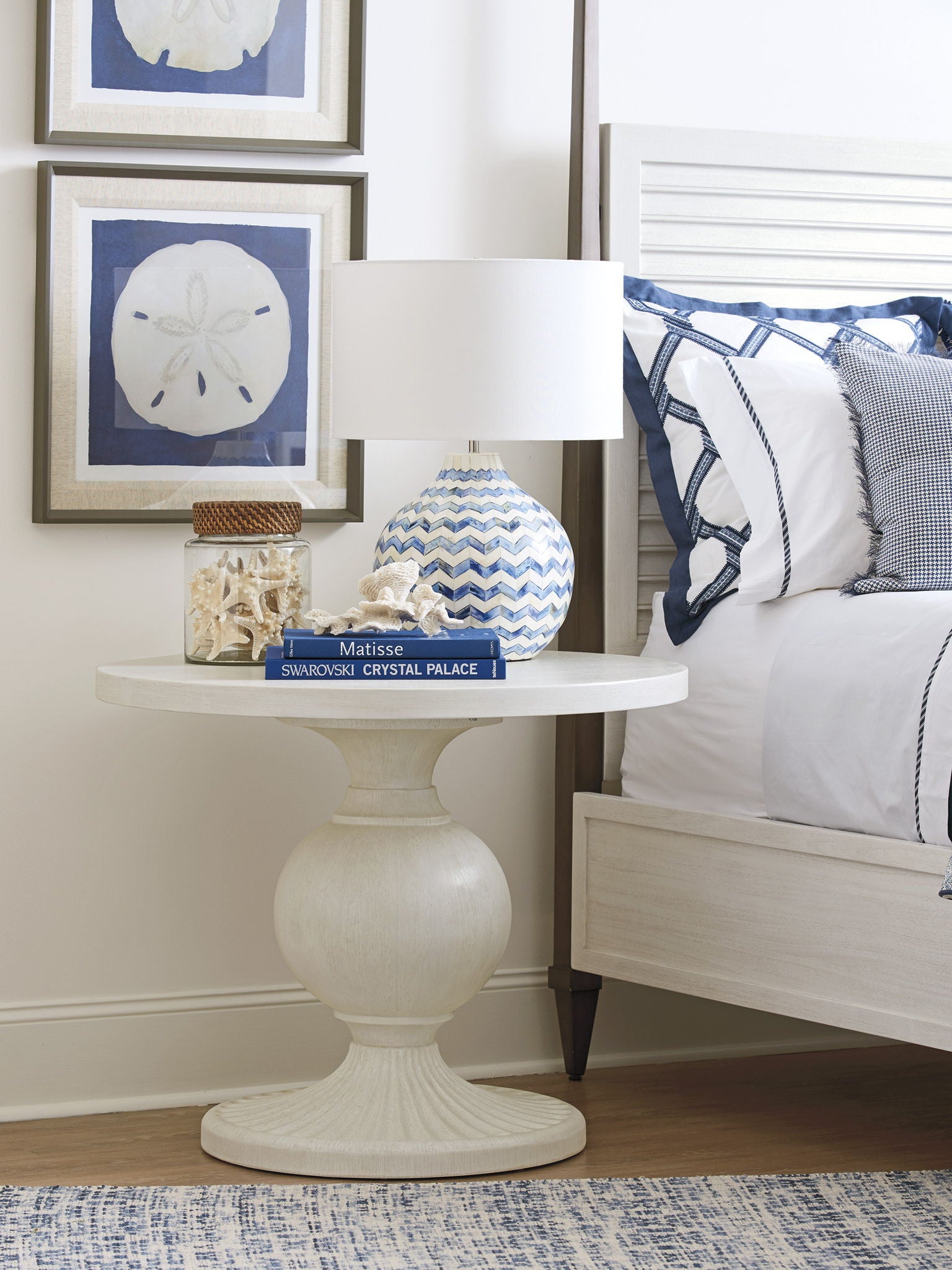 Unit price perOcean Breeze offers a fresh take on relaxed coastal living with transitional designs crafted from quartered mahogany in a beautiful shell white finish. Natural materials add textural interest and a feel of authenticity to the collection, including leather-wrapped rattan, woven raffia, braided lampakanai and Santa Cruz marble. Custom hardware and metal bases are finished in aged pewter, reinforcing the casual spirit of the designs. Unique upholstery silhouettes incorporate woven materials and intricately carved wooden frames for a sophisticated look that retains the casual essence of the coast. Soothing color palettes include seaglass, citrine, coral, marine blue and crisp white. The Tommy Bahama brand is iconic for its interpretation of casual elegance, and Ocean Breeze offers an inspired interpretation of refined coastal living.
