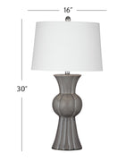 The Orillia Table Lamp features a grey ceramic base that adds a subtle touch of sophistication to any space. The white tapered drum-style shade softens the light, creating a warm and inviting ambiance. With its traditional design, this lamp effortlessly complements a variety of interior styles, bringing both timeless appeal and functionality to your home. The Orillia Table Lamp is an excellent choice for adding classic charm and style to your decor.