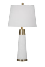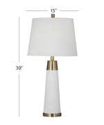 xemplifying meticulous craftsmanship, the Osage Table Lamp is expertly fashioned from a combination of metal and glass, showcasing a masterful blend of durability and aesthetic appeal. The lamp boasts a sophisticated white and brass finish, introducing an element of timeless elegance to its design. Complemented by a white tapered shade, the Osage Table Lamp achieves a harmonious balance between classic charm and contemporary style. The carefully selected materials and design elements make this lamp a distinguished addition to interior spaces, seamlessly marrying enduring design with a touch of modern allure. The white tapered shade complements the white and brass finish, casting a soft and inviting glow that enhances the ambiance of any room. With meticulous attention to detail and a thoughtful approach to design, the Osage Table Lamp stands as a symbol of seamless integration, offering both functional illumination and an aesthetically pleasing accent to elevate the overall decor.