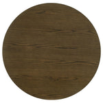 This transitional-style round dining table combines timeless design with practical functionality. Featuring a rich brown finish, it showcases a beautifully crafted tabletop supported by angular legs for a contemporary touch. An open lower shelf adds convenient storage or display space, enhancing its versatility. Constructed from white oak veneer, Asian hardwood, and engineered wood, this table provides both durability and style, making it a perfect centerpiece for any dining space.