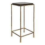 • Designed With Minimalism And Versatility In Mind, This Hammered Iron Accent Table Is Coated In A Richly Antiqued Gold Finish With A Thick Cast Glass Top.