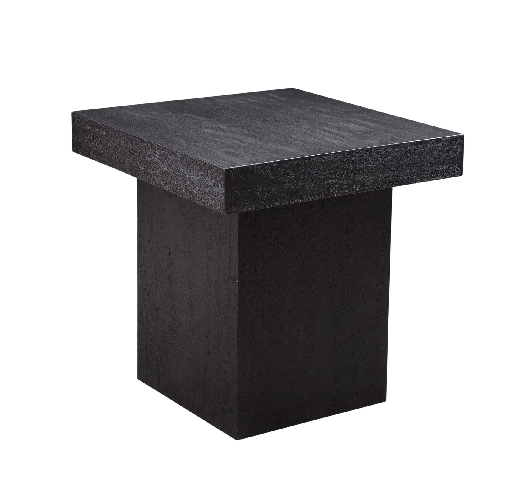 The Padula Large End Table exudes modern sophistication with its minimalist design and clean lines. Crafted from solid wood and mango veneers in a sleek matte black finish, this end table adds a touch of elegance to any space. Its matte black surface complements its sturdy construction, making it a stylish and functional addition to any space.