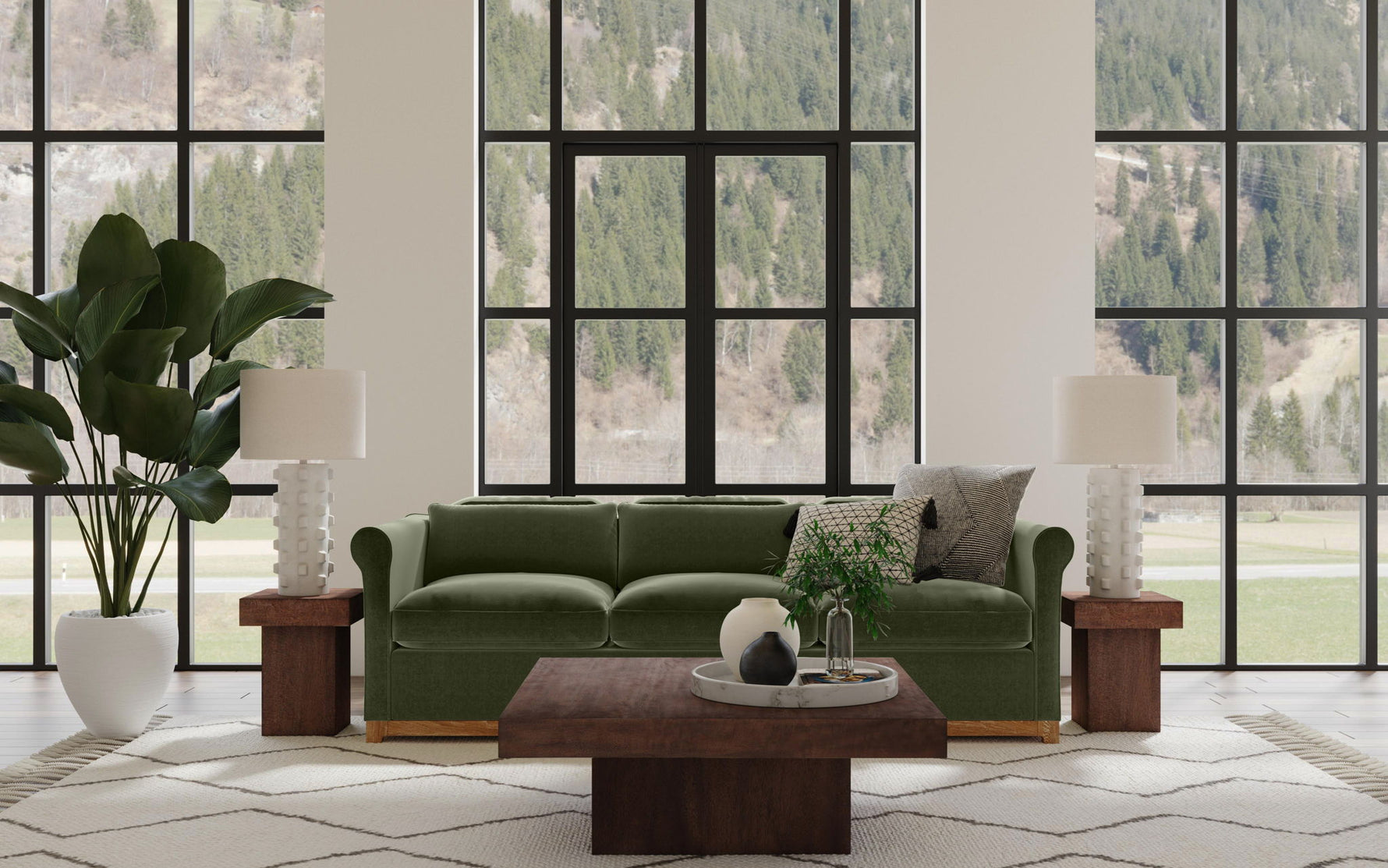 - Modern design in a warm, moody brown finish