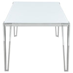 Clean lines and sleek materials give this dining table a distinctly modern edge. The white frosted tempered glass top offers a bright, airy look, while the polished stainless steel frame delivers durability and shine. Designed with geometric, hairpin-inspired legs, this rectangular dining table comfortably seats six and suits both casual and formal dining spaces with effortless style.