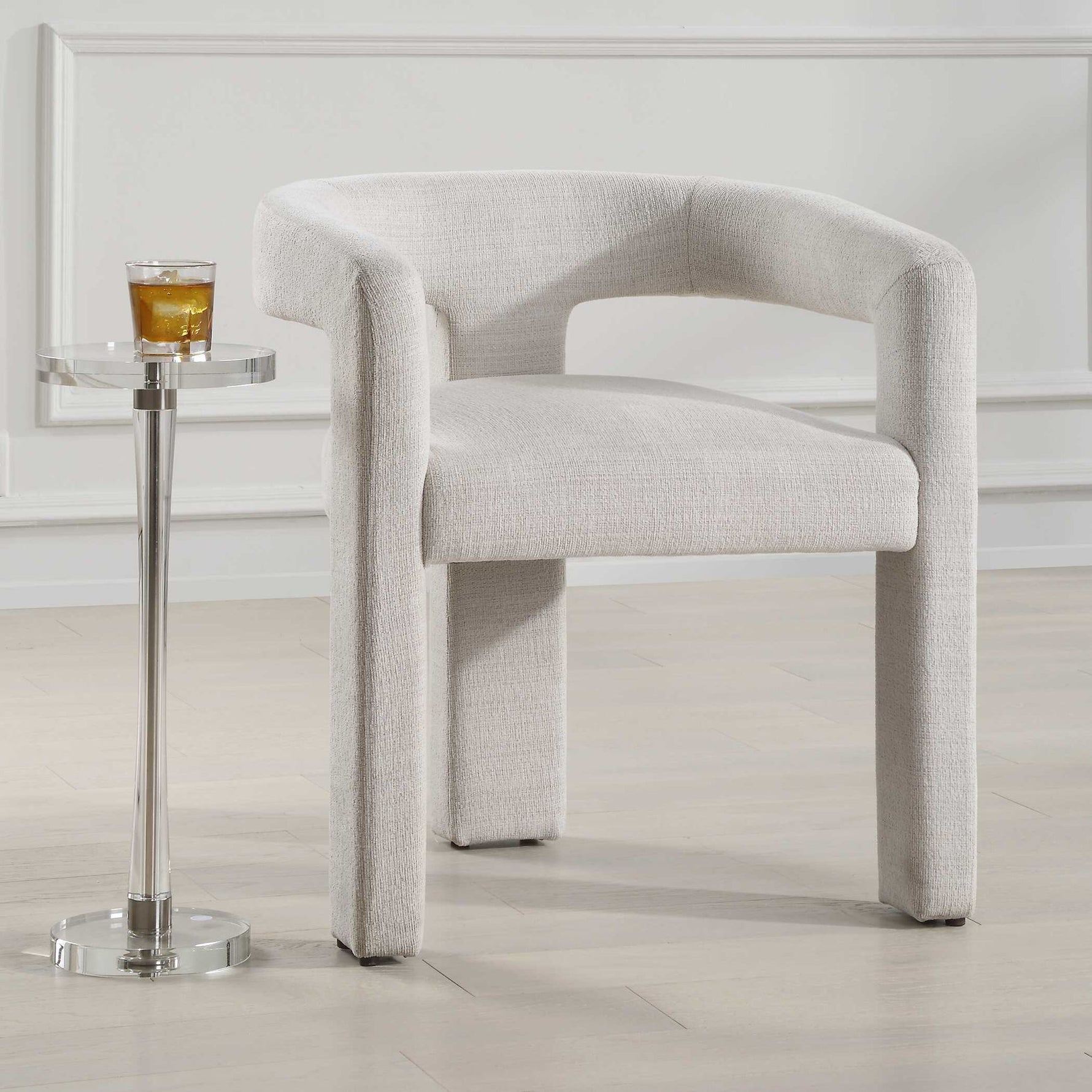 Adding Sculptural Style To Any Table, The Perspective Dining Chair Features Tailored Curves While Maintaining Optimal Comfort. Upholstered In An Ecru Woven Polyester Fabric With A Toxin-free, Eco Friendly Treatment To Help Resist Water Based Stains.