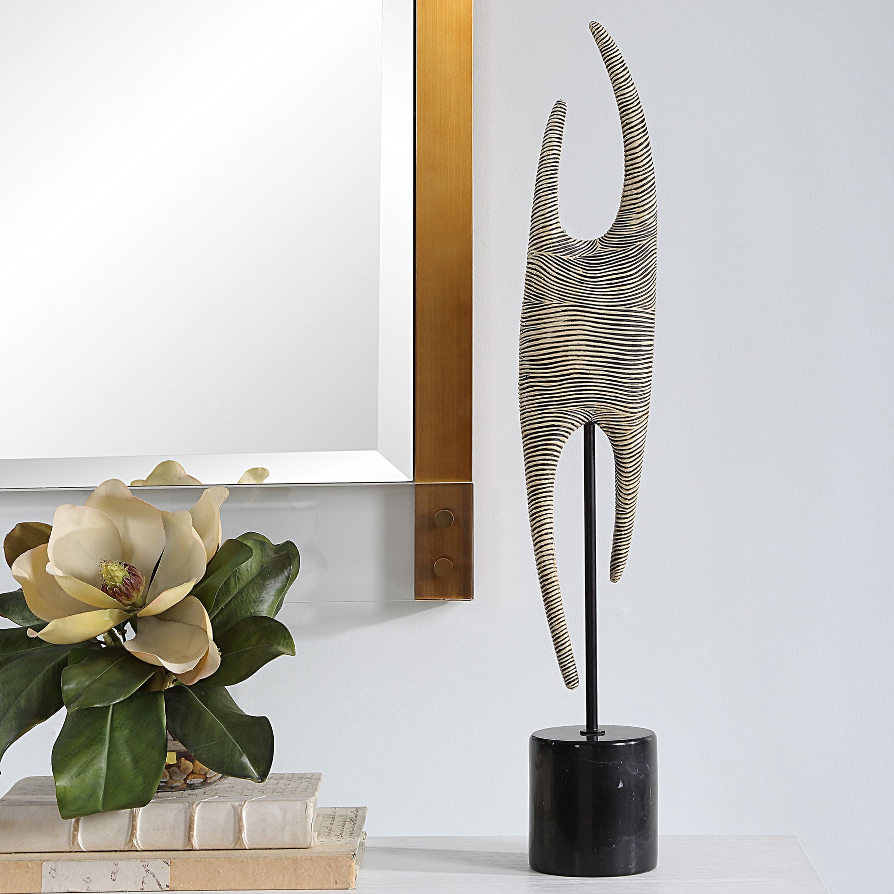 - Inspired By A Mermaid's Purse, This Sculpture Features A Very Unique Look And Ribbed Pattern Finished In Black And White With Black Iron Stand And Marble Base.