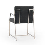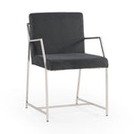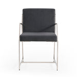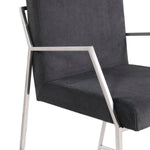 Sleek polished stainless angles that wrap around an upholstered seat compose a comfortable and handsome chair statement for your contemporary dining space.