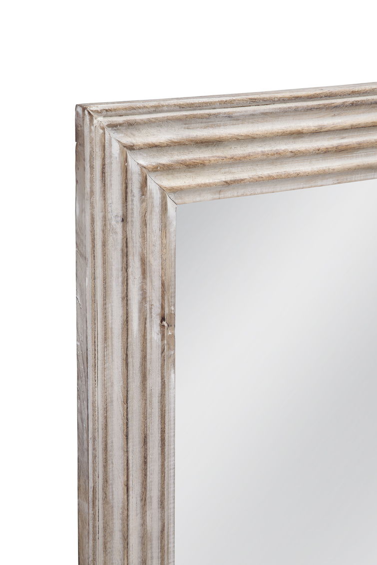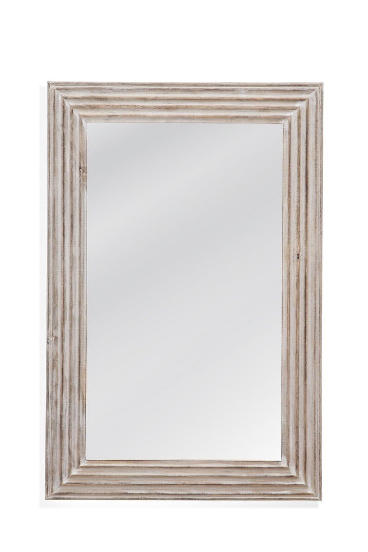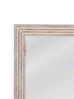 The Prichard Wall Mirror is rectangular with a stair stepping silhouette. The mango wood frame is finished in white washed.