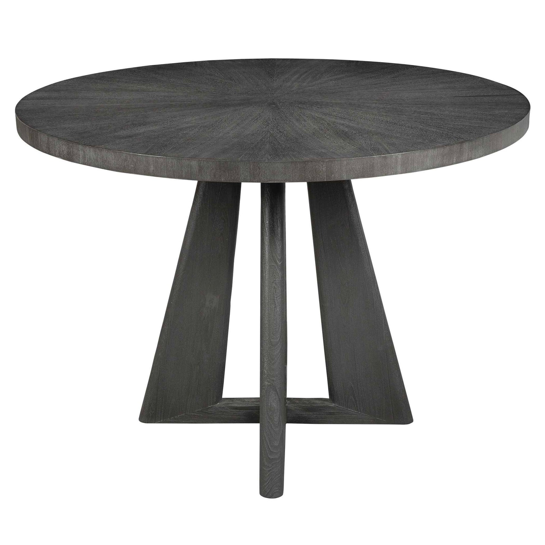 - Full Of Contemporary Versatility, This Dining Table Features A Rich Acacia Veneer Top In Dark Walnut Stain Washed With A Light Gray Glaze. Rounded Legs In Solid Acacia Enhance The Beauty Of The Sunburst Oval Top. Solid Wood Will Continue To Move With Temperature And Humidity Changes, Which Can Result In Cracks And Uneven Surfaces, Adding To Its Authenticity And Character.