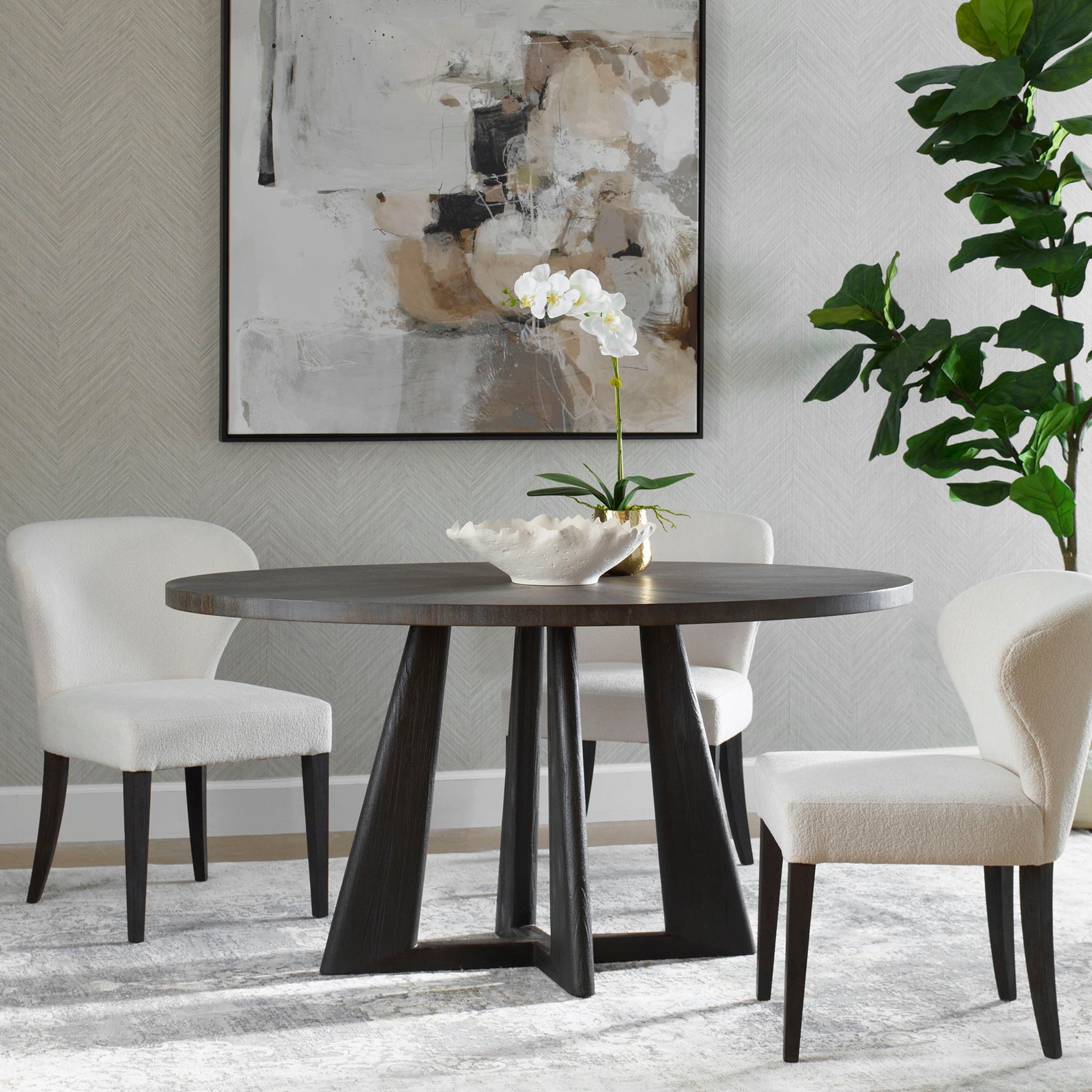 Full Of Contemporary Versatility, This Dining Table Features A Rich Acacia Veneer Top In Dark Walnut Stain Washed With A Light Gray Glaze. Rounded Legs In Solid Acacia Enhance The Beauty Of The Sunburst Oval Top. Solid Wood Will Continue To Move With Temperature And Humidity Changes, Which Can Result In Cracks And Uneven Surfaces, Adding To Its Authenticity And Character.