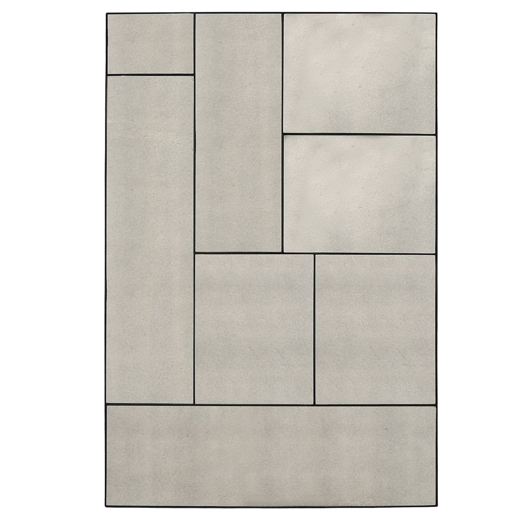 This Oversized Piece Showcases A Geometric, Multi-panel Design Featuring Antique Style Mirrors Accented By A Slim Black Iron Frame. May Be Hung Horizontal Or Vertical.