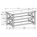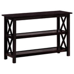 Bring an energizing look to a transitional space. With linear styling and geometric x-shapes on its side panels, this console table creates an eye-catching effect. Deep merlot offers a scrumptious, dramatic finish that blends well with surrounding furnishings. Find plenty of shelf space to match its rectangular surface. Place behind a sofa or against a wall for a central focus.