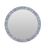 The Radial Bone Wall Mirror, with its modern round design, showcases a stunning blend of natural-colored and blue bone inlay arranged in a captivating radial pattern. This unique piece effortlessly infuses a touch of modern sophistication into any space, adding a vibrant pop of color while exuding timeless elegance.