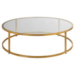A Complement To Any Modern Space, The Radius Coffee Table Features An Iron Frame Finished In Lightly Antiqued Gold With A Clear Glass Top.