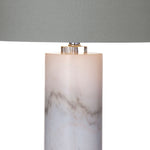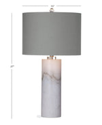 The Raywick Table Lamp brings a touch of luxury with its white marble cylindrical base, perfect for the glamor-seeking decorator. The cool sophistication of marble meets the soft texture of a gray linen drum shade, making this lamp a harmonious addition to any lavish or modern setting. Illuminate your space with this elegant piece that beautifully merges classic materials with contemporary design.