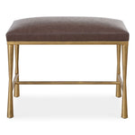 - A Classic Transitional Accent Bench In Rich Tones, Featuring Cocoa Distressed Faux Leather And A Sturdy Iron Base In Lightly Antiqued Gold.