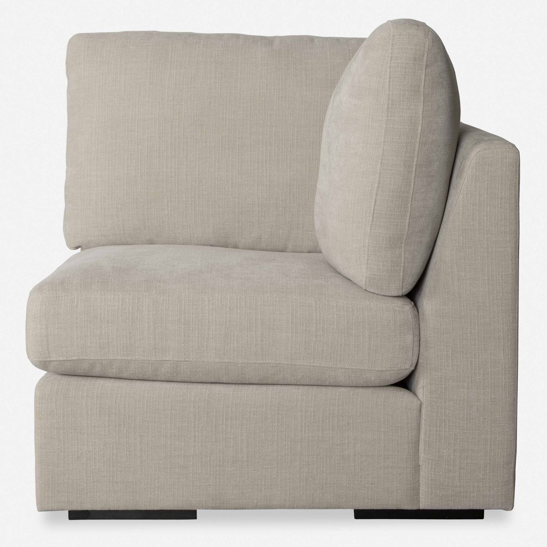 A Modern Silhouette That Offers Style And A Comfortable Place To Curl Up. The Refuge Modular Collection Is Crafted With Premium, High Durability Foam Cores And Synthetic Down Wrap. Featuring The Patented RidgEraser Technology To Ensure Consistent Comfort Between Cushions. Upholstered In A Velvety Textured Recycled Polyester Fabric In Light Sand.