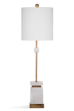 The Regulus Table Lamp is a stunning blend of contemporary glam and timeless elegance. Crafted with a white marble base and accented by sleek brass details, this buffet-style lamp is both functional and stylish. The white drum shade completes the design, offering a soft and inviting glow that enhances any space with sophistication.
