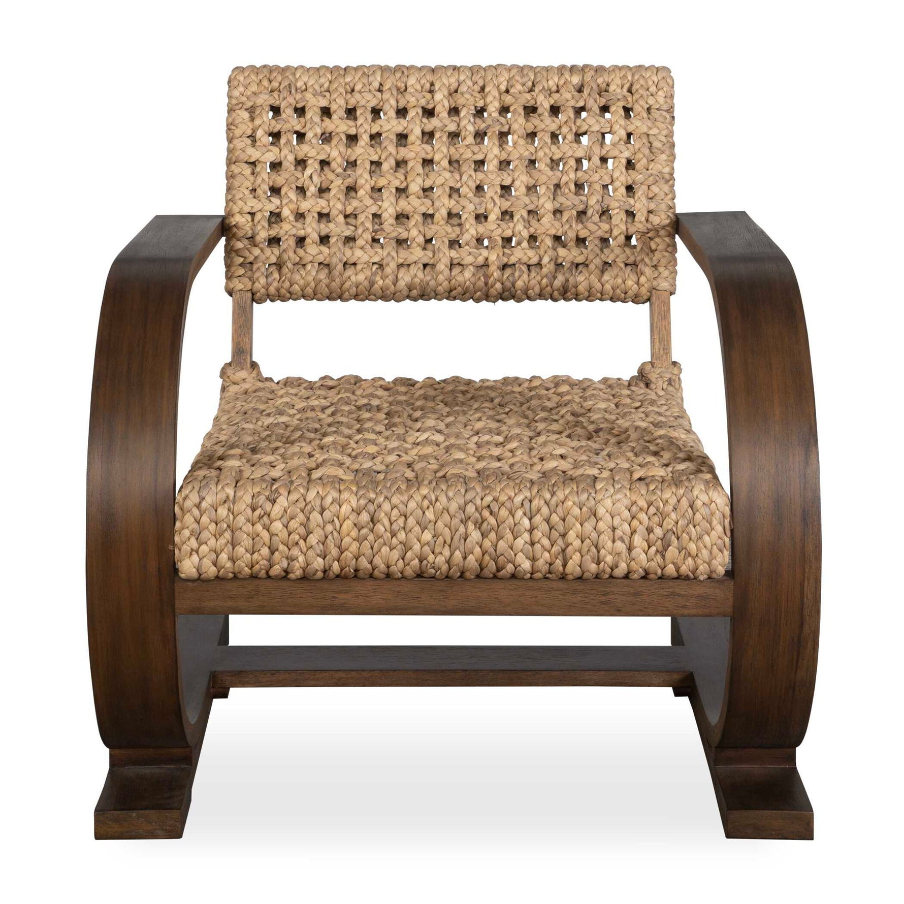- A Modern Bohemian Accent, Featuring A Natural Woven Water Hyacinth Seat On A Curved Solid Wood Frame Giving Flexible Movement, Layered In A Teak Veneer In Warm Walnut.