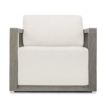 The Remsen Outdoor Lounge Chair Features A Striking Architectural Frame With Smooth Interior Curves That Give A Sculptural Presence. Constructed Of Solid Mahogany Wood In A Weathered Gray Finish With Wire-brushed Details. Its Generously Cushioned Floating Seat, Upholstered In An Oyster White Solution Dyed Acrylic Fabric, Is Designed To Withstand The Moisture And Dirt That Comes With Outdoor Use. Solid Wood Will Continue To Move With Temperature And Humidity Changes, Which Can Result In Cracks And Uneven Surfaces, Adding To Its Authenticity And Character.