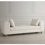Exceptional Comfort With Dual Functionality As An Oversized Bench Or Even A Small Day Bed, Featuring Chunky Curves And Dowel Feet In Light Oak, With Two Accent Pillows. Upholstered In A Finely Textured Faux Sheepskin In Soft Ivory.