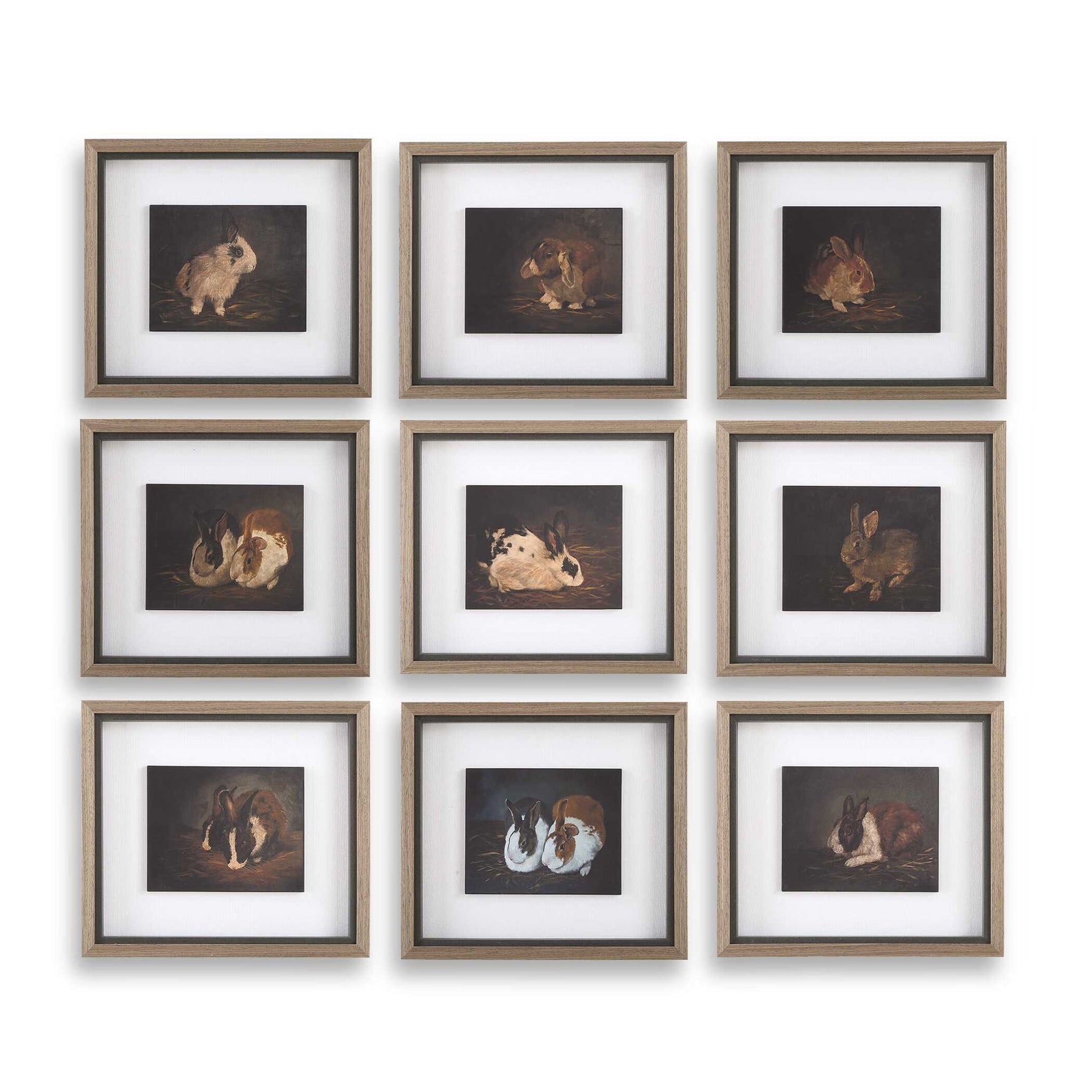 Resting Bunny - Framed Prints (Set of 9) - Dark Brown