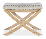 Unit price perTropical meets tribal with this Retreat Camp Stool Bed Bench. Featuring a seat upholstered in the patterned Jafar Grey, it has an X-base design. The base and stretcher are crafted of wood finished in the Sand finish, transparent by design to showcase the unique grain patterns of the wood veneer.