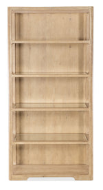 Inspired by tranquil, tropical resort destinations, the Retreat Etagere will help you create a peaceful setting in your home. Featuring four fixed wood-framed tempered glass shelves, the etagere is crafted of Oak Veneers finished in the sand-colored Dune finish, transparent by design to showcase the unique patterns of the wood veneer.
