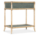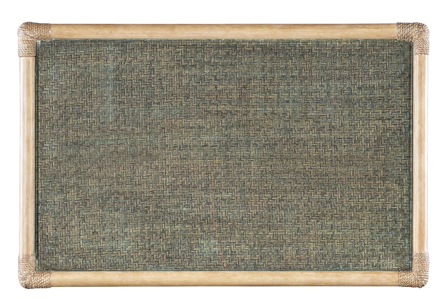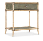 Unit price perInspired by tropical getaways, the two-tone Retreat Pole Rattan Bedside Table is a mixture of natural materials in a laid-back, versatile design. Crafted of Maple Veneers, Raffia and Rope, it features painted Raffia on the top and shelf in a Lagoon accent, while the frame and legs are in the finish. Featuring one self-closing drawer and one fixed shelf, the table has a glass top insert.