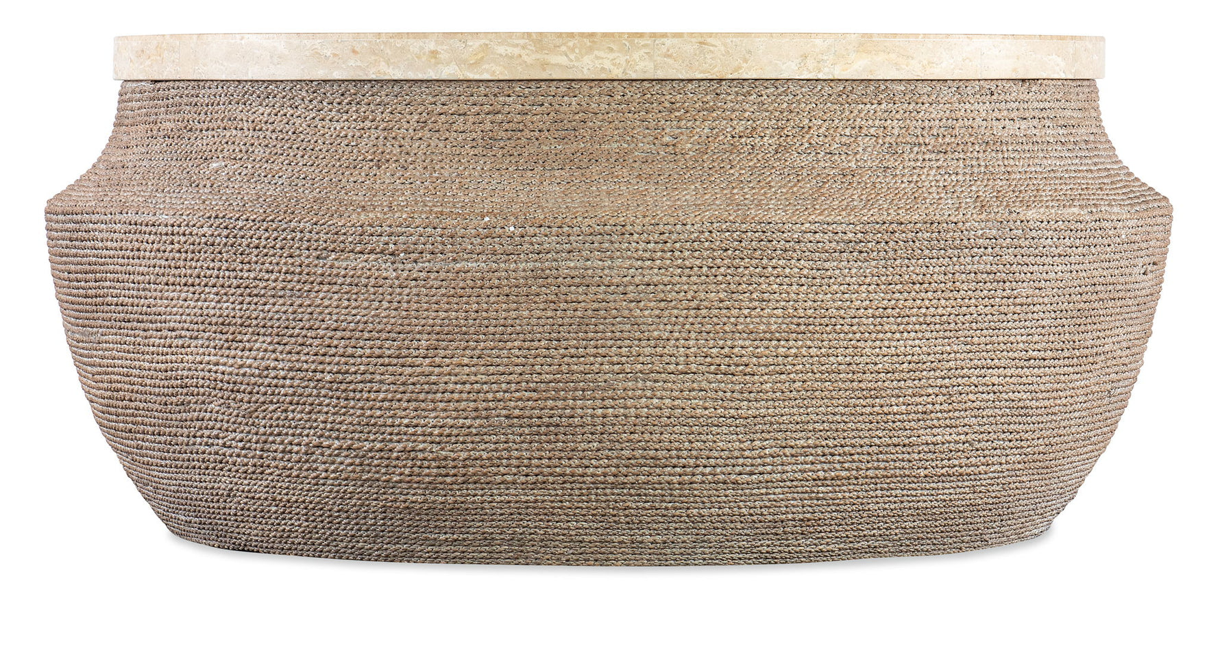 Unit price perEarthy, organic and chic, the Retreat Round Cocktail Table is rope-wrapped with a Travertine Stone Veneer top. The Travertine Veneer features brown, beige, gray and cream colors, and the rope wrapping is brown. On casters for easy mobility.