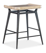 Industrial, chic and Zen, the two-tone Retreat Stool combines a light wood seat with a black metal base, stretchers and footrest. The scooped seat is crafted of wood finished in the sand-colored, transparent by design to reveal the unique grain pattern of the wood veneer.