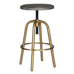 Contemporary In Style, The Revolve Counter Stool Features A Sturdy Stainless Steel Base Finished In Plated Brushed Brass With A Solid Acacia Wood Top In Dark Walnut And Washed With A Light Gray Glaze. Adjusts From 24" To 30"H.