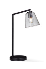 The Rhyne Desk Lamp is crafted of iron with a bronze finish.