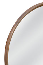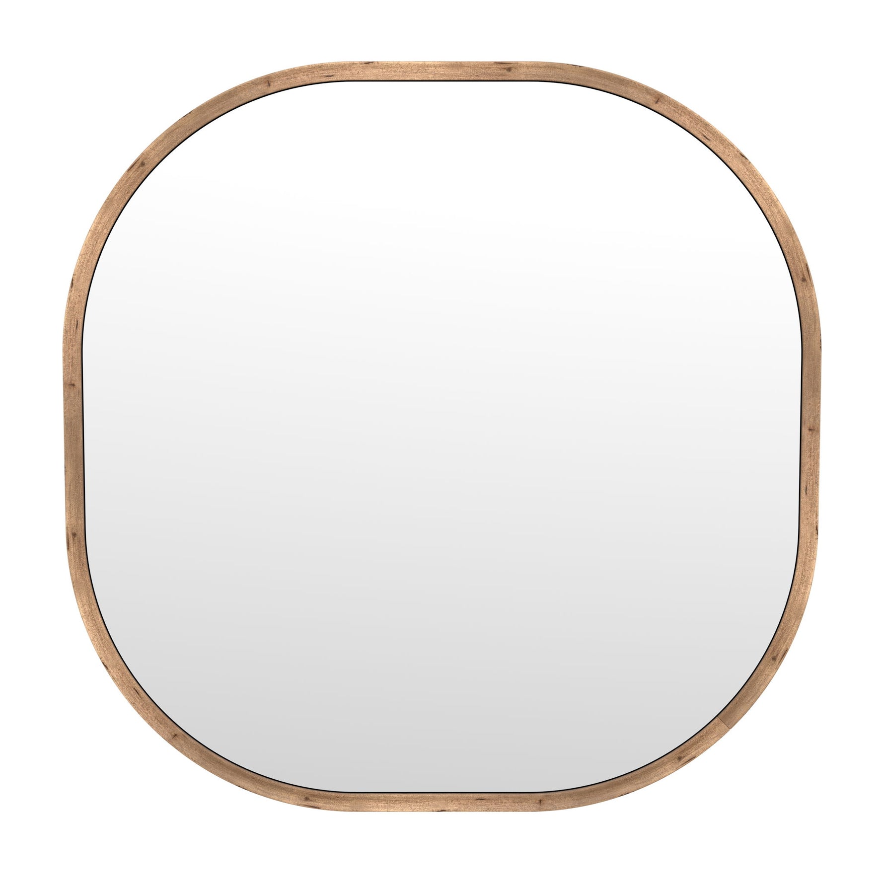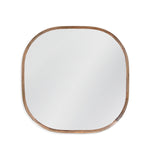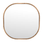 The Richards Wall Mirror boasts a wooden square design with rounded corners, featuring natural materials that evoke a Boho style. Its glass mirror is framed by natural mango wood, with a square frame featuring an inner curve for added dimension and style, blending modern aestheics with natural charm.