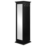 This accent cabinet provides practicality and fashion perfect for a spacious kitchen or den. It's built with five shelves perfect for storing books and decorative vases or knickknacks. It has a mirror and plenty of hooks for hanging keys and other quick-grab necessities. Put up family photos and daily inspirational quotes on the convenient corkboard. The cabinet even swivels for when you want to find something quickly.