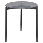 This modern coffee table set includes a sleek coffee table and matching side table, both featuring tempered smoked glass tops for lasting durability and style. Supported by sturdy black powder-coated metal bases with a sandy texture, the set exudes contemporary elegance. The minimalist round designs ensure versatile functionality and seamless integration into any living space. Perfect for creating a cohesive and modern focal point.
